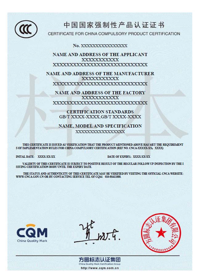 為加強對CCC產(chǎn)品認(rèn)證證書和標(biāo)志的管理,確保CCC產(chǎn)品認(rèn)證證書和標(biāo)志的正確使用,維護(hù)CCC產(chǎn)品認(rèn)證證書和標(biāo)志的權(quán)威性和CQM的信譽,方圓標(biāo)志認(rèn)證集團(tuán)依據(jù)國家認(rèn)證認(rèn)可的相關(guān)要求制定了產(chǎn)品認(rèn)證證書和標(biāo)志使用規(guī)則。